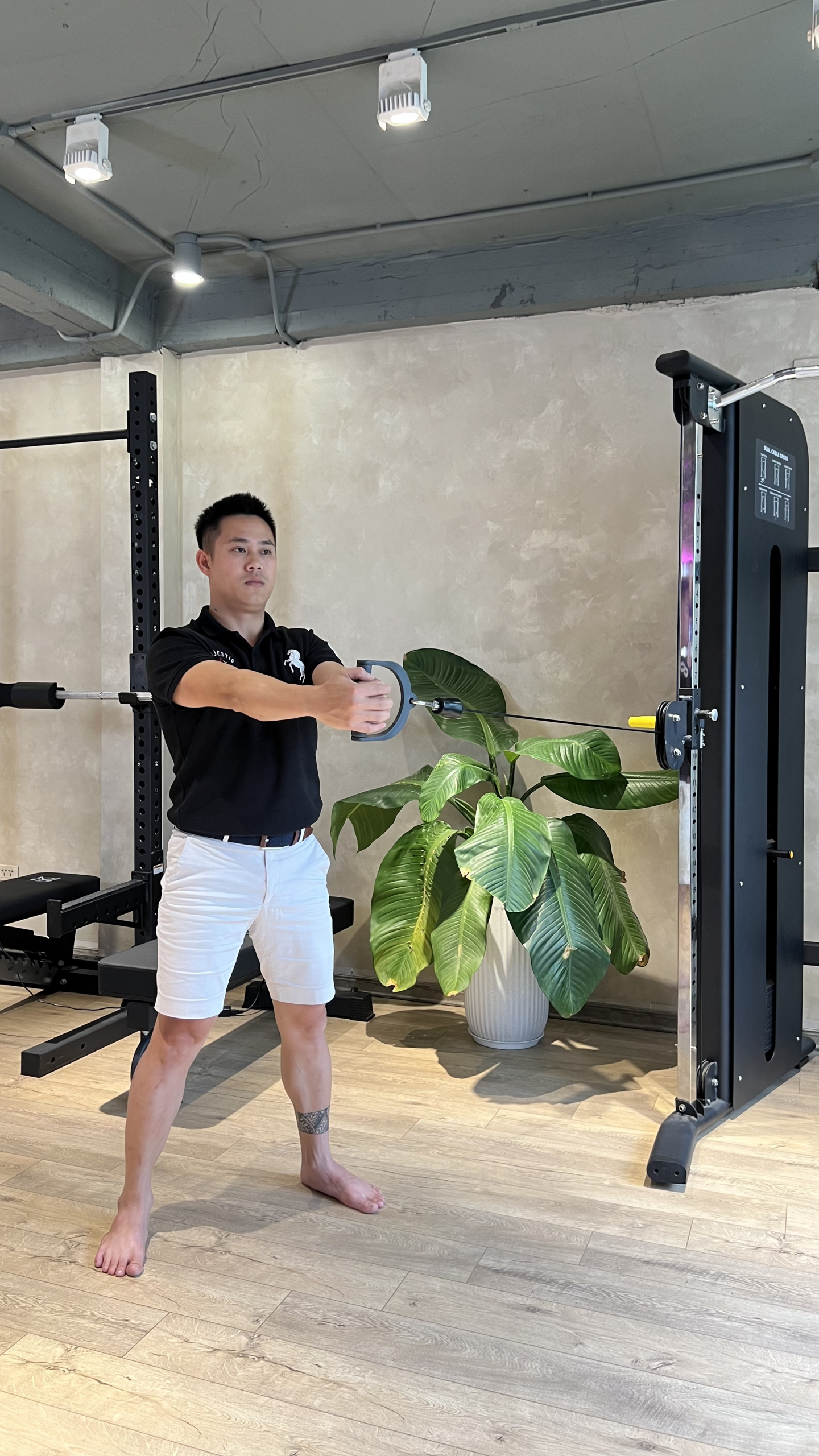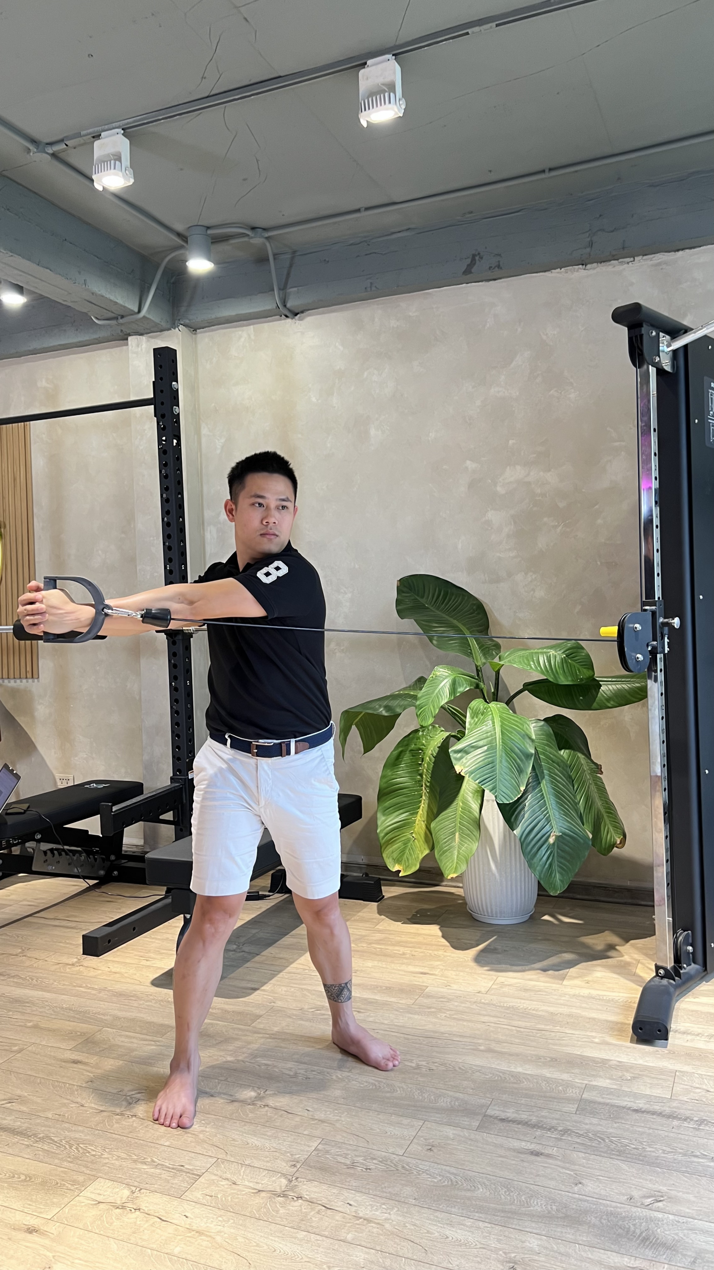 - Cable Wood Chops: Xoay người với dây kháng lực, tập trung vào chuyển động có kiểm soát. 3 hiệp, 10 lần mỗi bên.